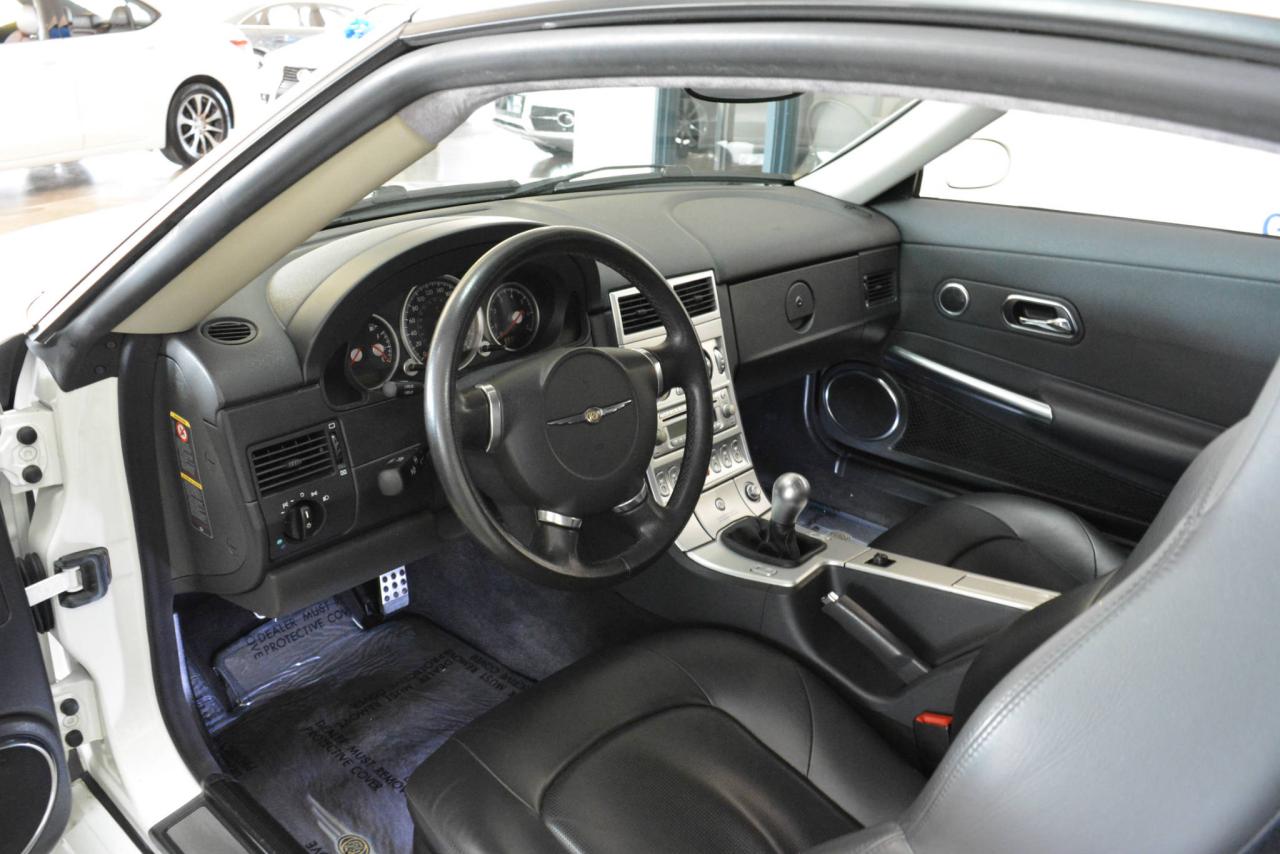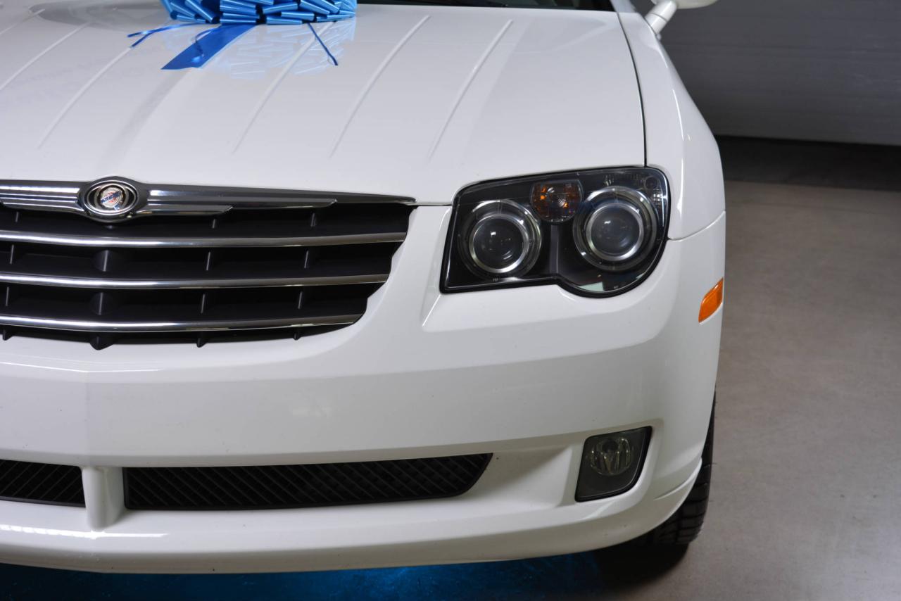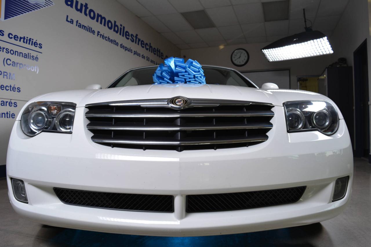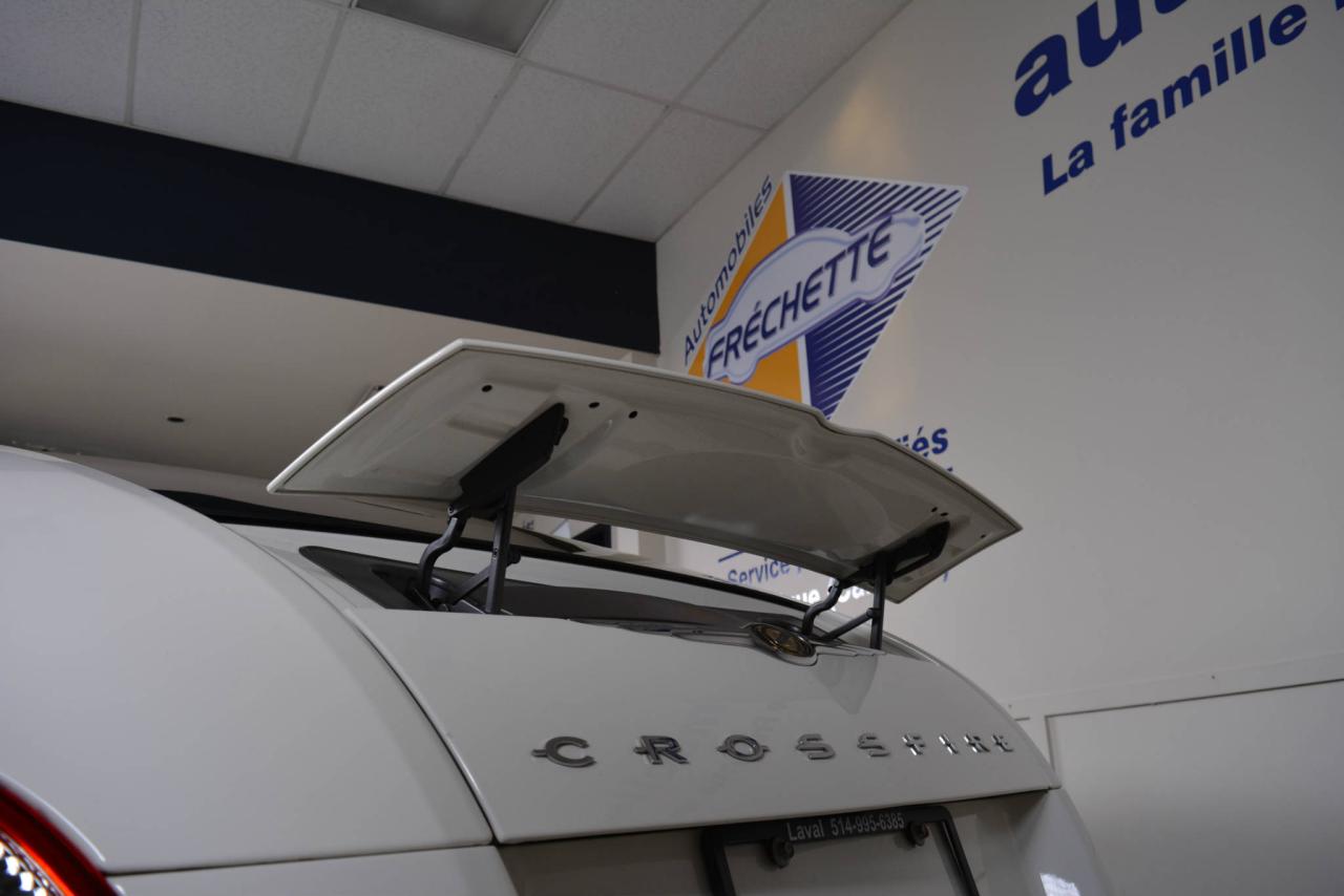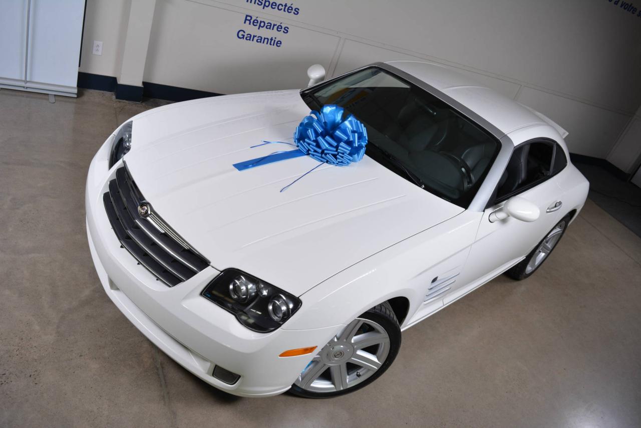 * Inspection complète et esthétique inclus * Crossfire Limited coupé 2 portes * 2 places * Transmission manuelle 6 vitesses * Propulsion arrière * Moteur V6 3.2L * Roues en alliages 18'' avant et 19'' arrière * #Cuir noir# * Sièges électriques chauffants * Rétroviseurs chauffants * Régulateur de vitesse * Climatisation 2 zones * Lecteur CD * Provient d'un client d'Automobiles Fréchette